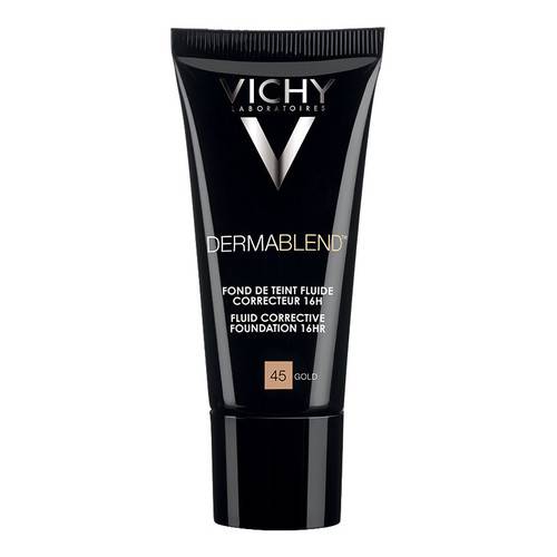 VICHY DERMABLEND Fondotinta fluido correttore per pelle sensibile. Utile in caso di colorito non uniforme, occhiaie, rossori diffusi. Testato su pelle sensibile. Senza parabeni. Formulato per ridurre i rischi di allergia. Non comedogeno. Senza profumo. SPF 30. Tonalità: 15 Opal, 25 Nude, 35 Sand, 45 Gold, 55 Bronze.