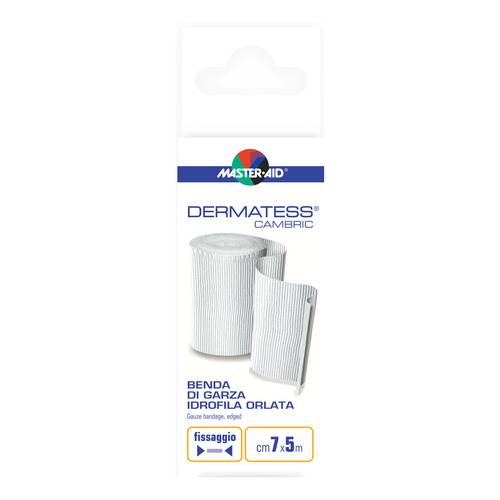 MASTER•AID DERMATESS CAMBRIC Dispositivo medico CE. Benda con bordi orlati per prevenire sfilacciamenti, morbida e resistente. Particolarmente indicata per pelli delicate e sensibili. Utile per il fissaggio di medicazioni.