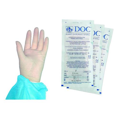 Guanti Chirurgia STERILI Misure e codice: - Misura 6.5: 12500; - Misura 7: 12520; - Misura 7.5: 12540; - Misura 8: 12560; - Misura 8.5: 12580.
