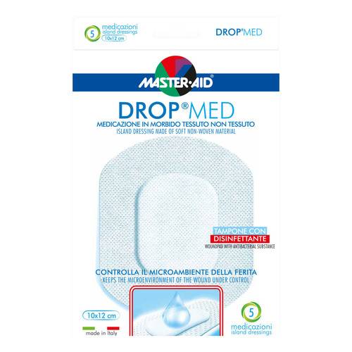 Medicazione traspirante in tessuto non tessuto, dotata di un tampone assorbente con sostanza disinfettante (clorexidina digluconato 0,5%).