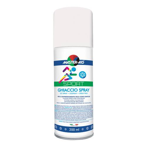 MASTER•AID SPORT GHIACCIO SPRAY Dispositivo medico CE 0373, classe IIa. Bomboletta spray per la terapia del freddo, particolarmente indicata nelle attività sportive per la sua praticità e velocità di raffreddamento. Per il rapido raffreddamento di zone interessate da contusioni, distorsioni, strappi muscolari, stiramenti ed in tutti i casi dove è necessario sostituire l'applicazione di ghiaccio e di acqua fredda.
