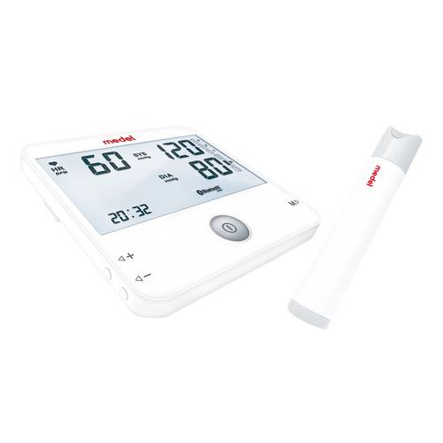 Il misuratore di pressione da braccio Medel CARDIO MB10 con funzione ECG rileva la misurazione automatica della pressione e del battito cardiaco. Incluso lo stick ECG ad un canale per la registrazione della frequenza cardiaca. Scarico e controllo dati tramite la app iBP Monitor e Software.