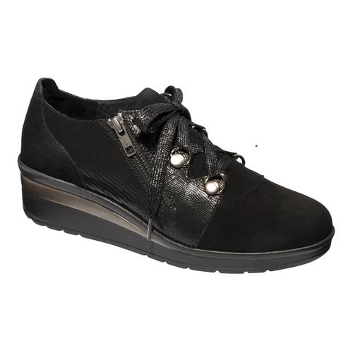 Scarpa con occhielli stile trecking shoe e lacci glitterati da fashionista che si combinano con dettagli più comfort per dare origine ad una calzatura da indossare come una scarpa casual con outfit più classici ma anche come una sneakers con piglio sportivo. La comodità tipica delle calzature Scholl è garantita dalla morbida pelle della tomaia, il plantare removibile, la zip laterale per una facile indossabilità e la calzata abbondante (fitting G). La fodera in morbida microfibra è trattata con aloe vera. Il plantare è realizzato con tecnologia Scholl Memory Cushion che ridistribuisce la pressione del piede su tutta la pianta.
